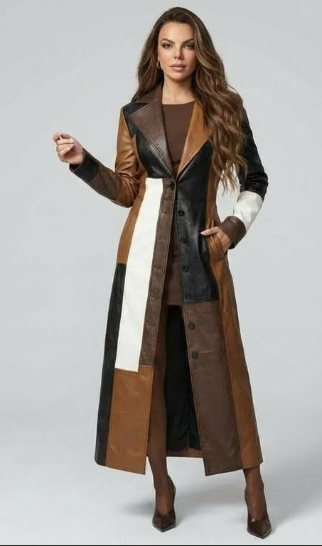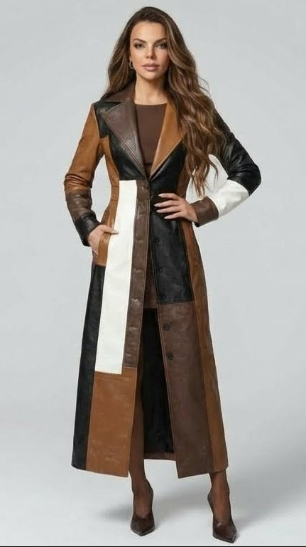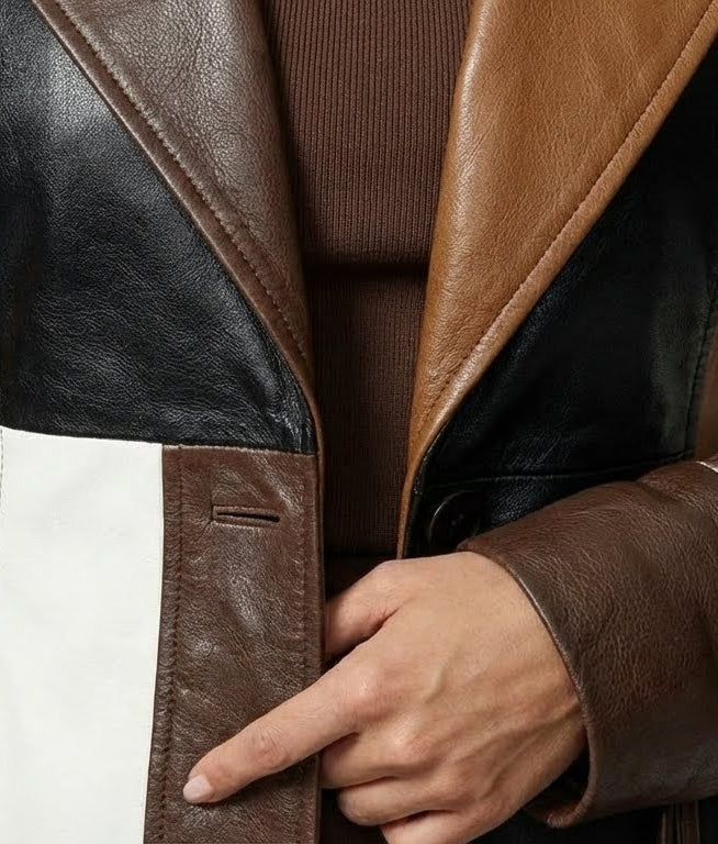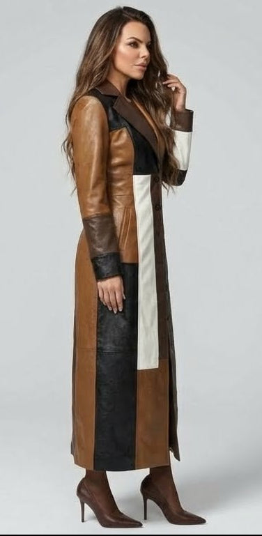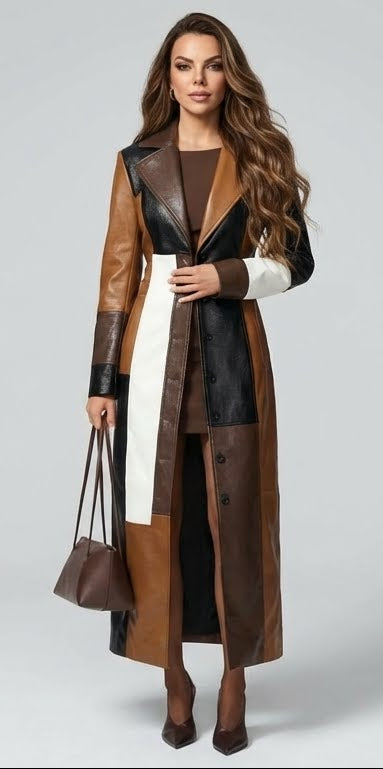 • Diseño: Patchwork multicolor en tonos camel, marrón, negro y blanco