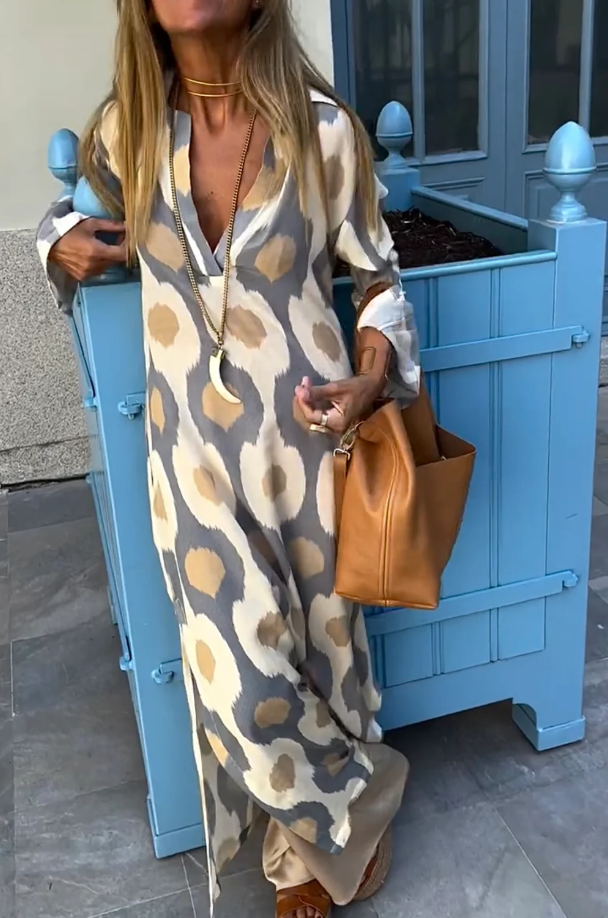 El vestido Aegea es la definición de sofisticación sin esfuerzo. Su diseño fluido, estampado armonioso y tejido ligero lo convierten en la prenda ideal para cualquier ocasión. Perfecto para quienes buscan un look elegante, cómodo y versátil en un solo conjunto.