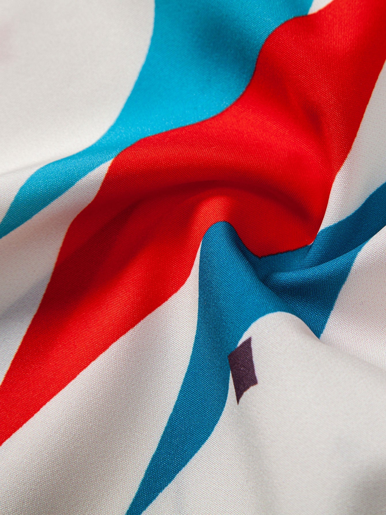 Camisa de Botón con Estampado Geométrico Atómico y Pantalones Cortos de Baño