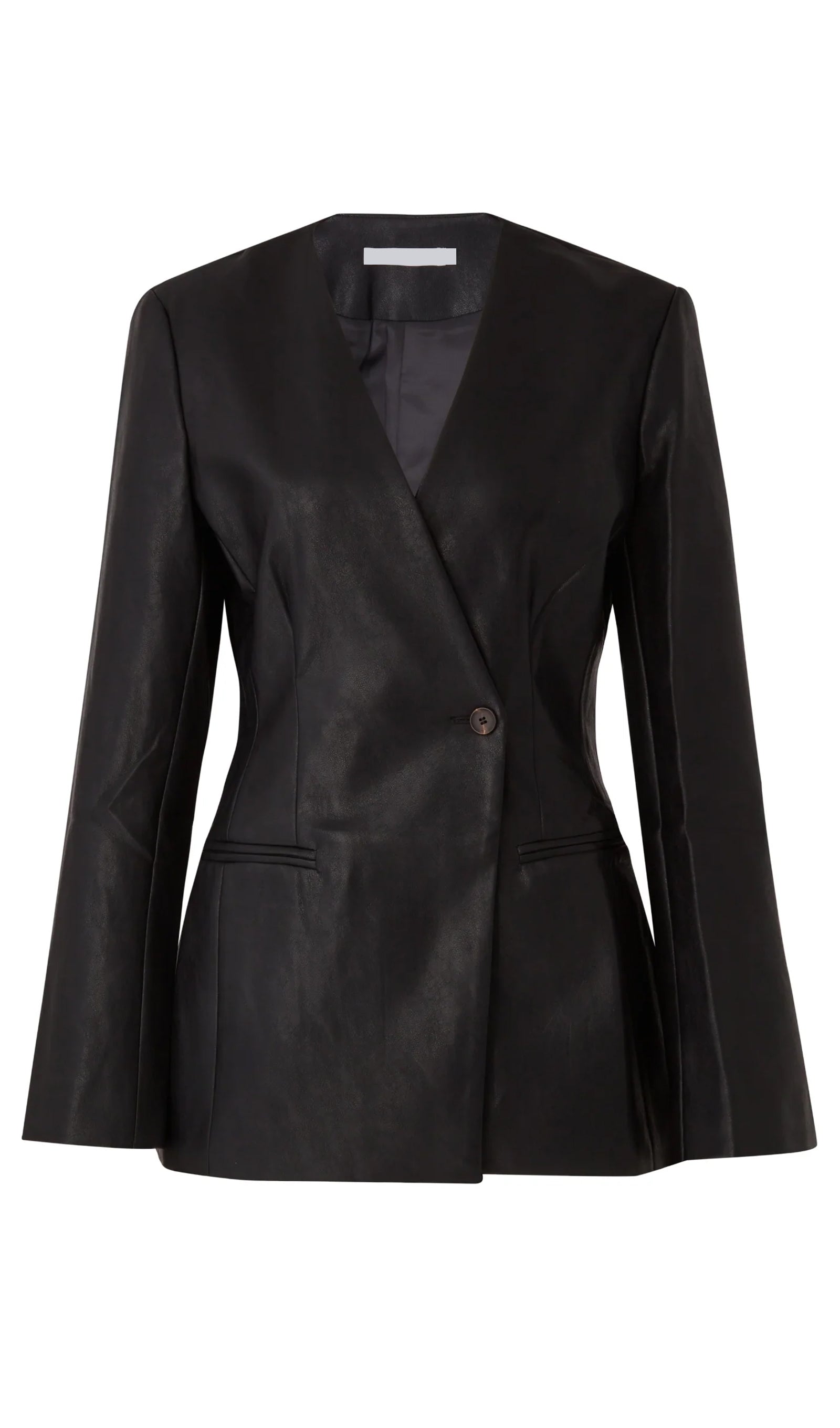 Esta Blazer de Cuero Vegano combina la elegancia clásica con un toque moderno.