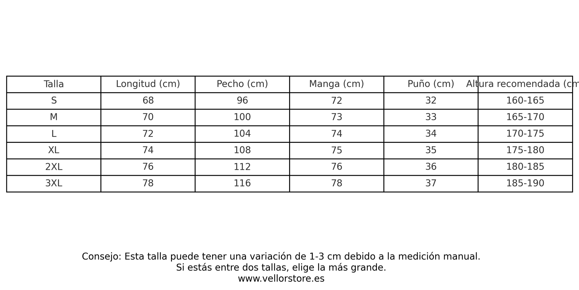 La pedí en 2XL porque prefiero que me quede holgada y fue un acierto. Muy cómoda para llevar debajo un jersey o abrigo.
