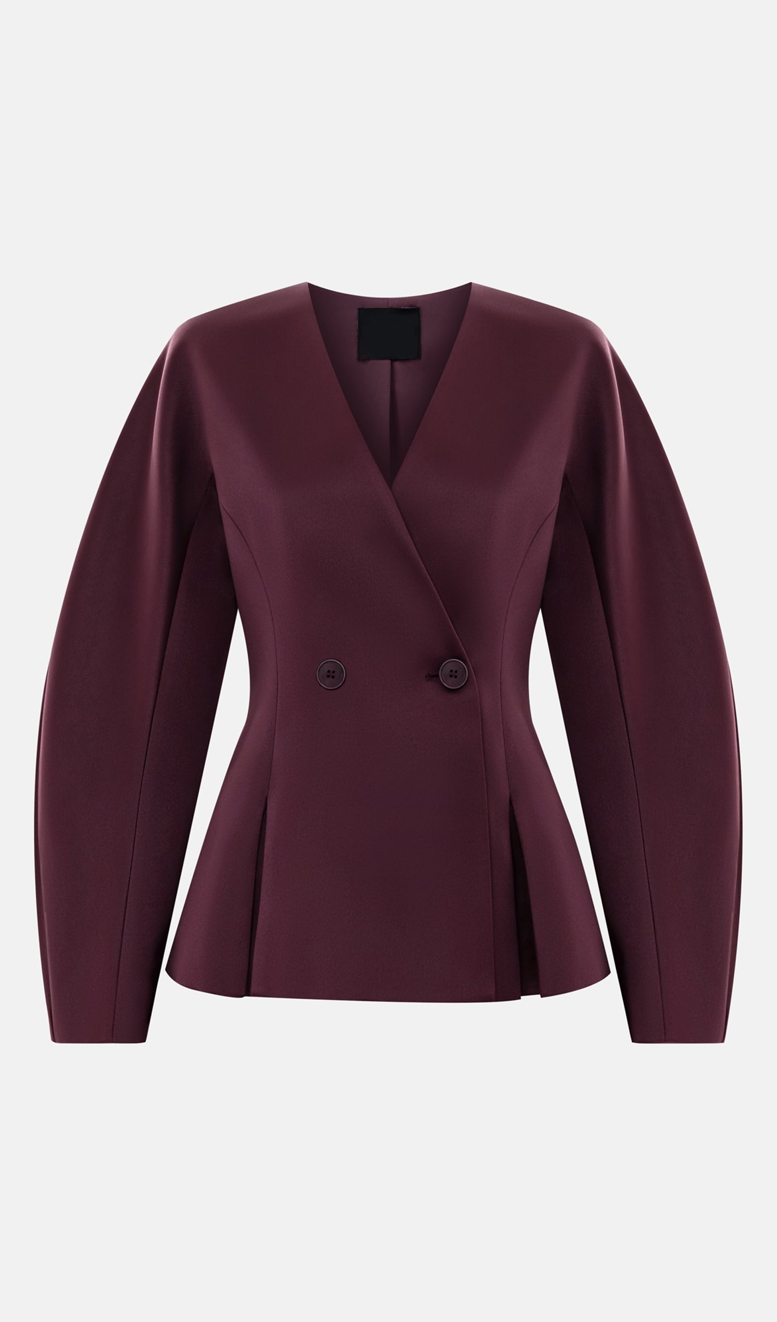 La Chaqueta cruzada con pliegues en la cintura y escote en V combina la elegancia del corte sastre con la feminidad de los detalles estructurados.