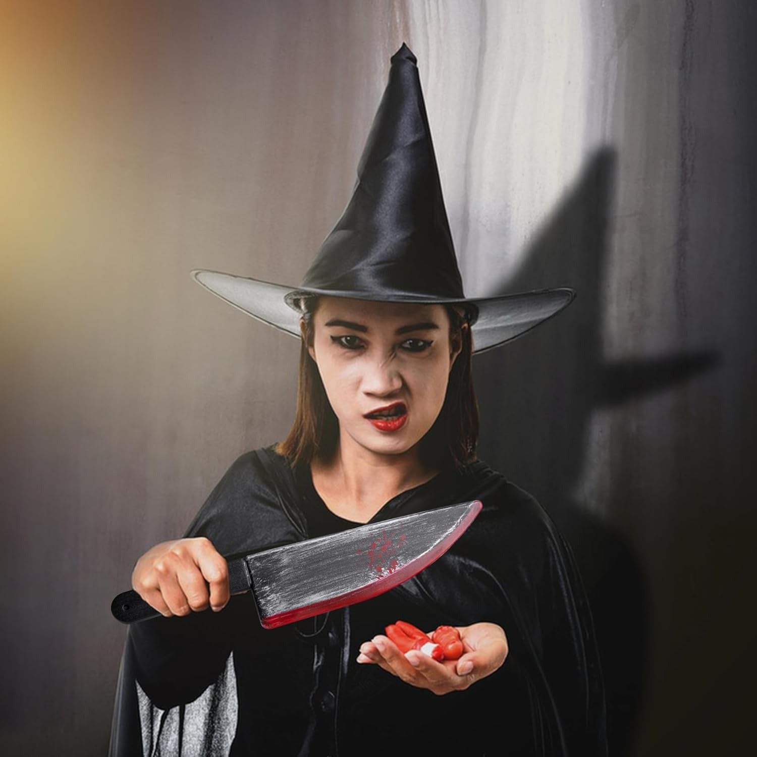 Añade un toque espeluznante y realista a tu disfraz con este cuchillo de carnicero sangriento de plástico. Su acabado con sangre falsa genera un fuerte impacto visual, perfecto para causar sorpresa y miedo en fiestas de Halloween, casas encantadas o sesiones de fotos temáticas. Ligero, seguro y fácil de combinar, es el accesorio ideal para completar tu look de terror.