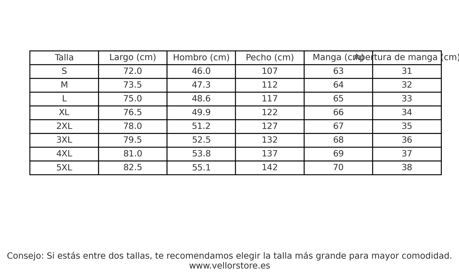 La pedí en 2XL porque prefiero que me quede holgada y fue un acierto. Muy cómoda para llevar debajo un jersey o abrigo.