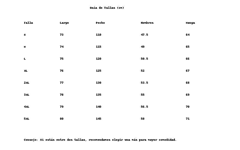 Consejo: Si estás entre dos tallas, te recomendamos elegir una talla más para un ajuste más relajado.