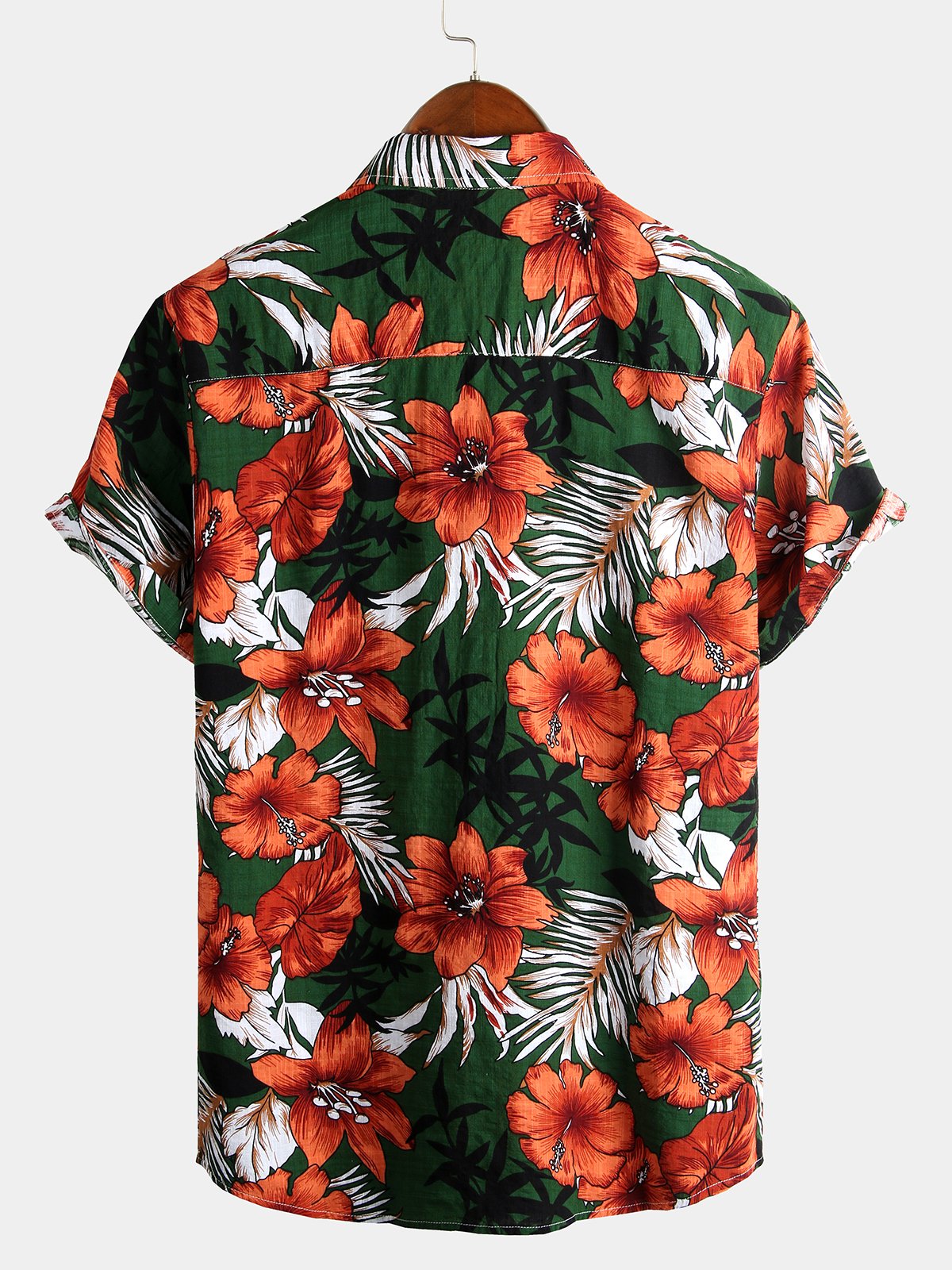 Camisa de algodón puro para hombre con estampado festivo hawaiano.