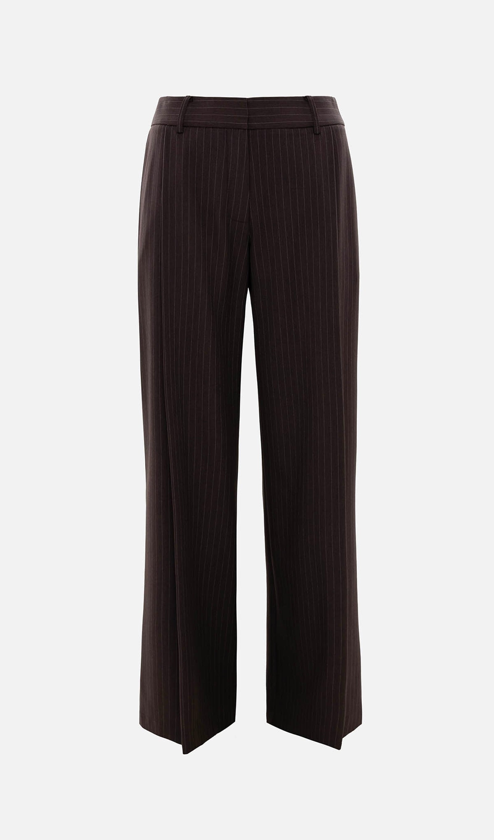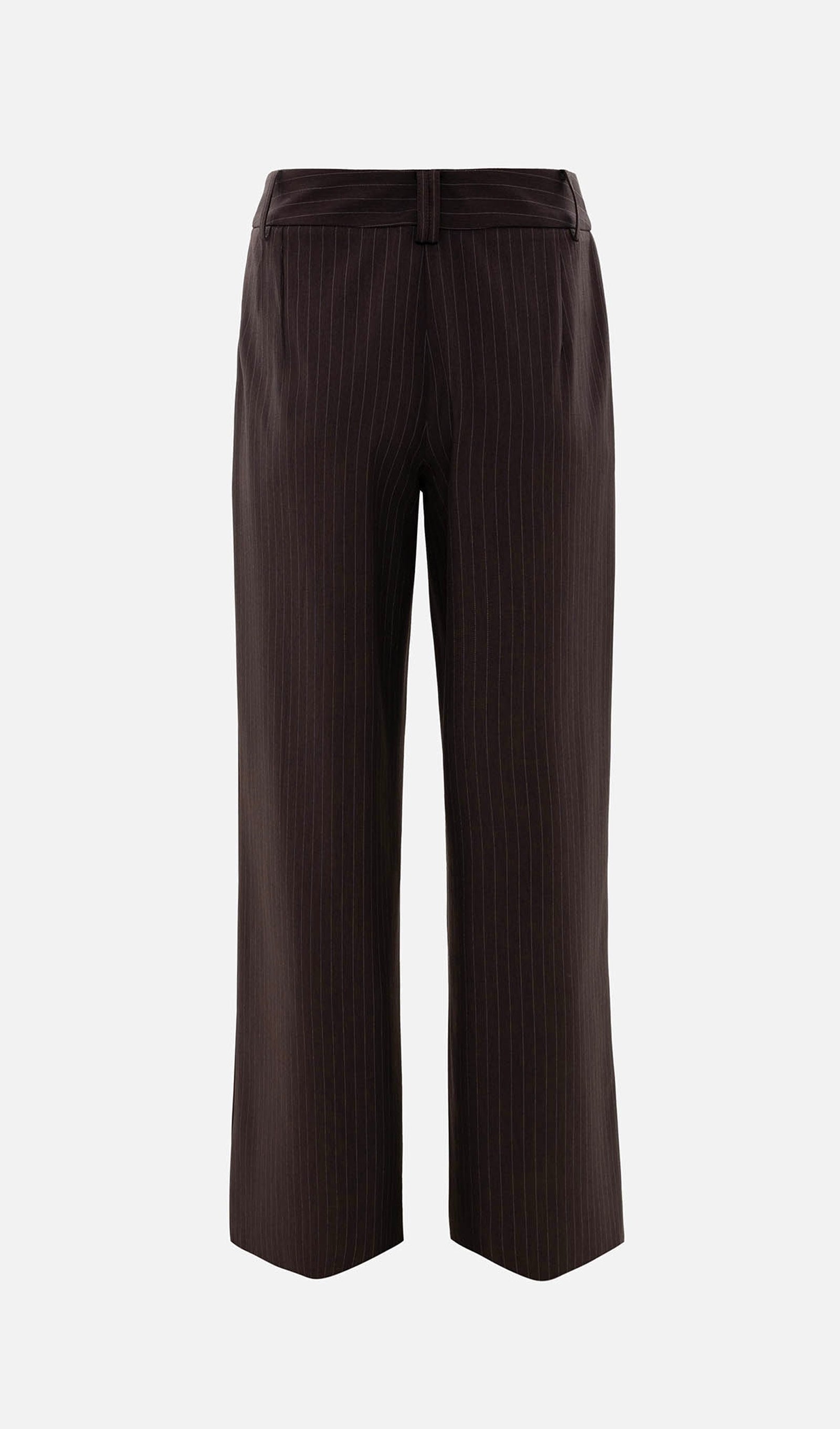 Con un ajuste fluido de talle medio y delicadas pinzas en la cintura, aporta comodidad sin renunciar a la elegancia. Su tejido denso con sutil raya diplomática le confiere una textura refinada y una caída impecable, ideal para combinar con la camisa a juego o con prendas básicas para un look profesional y moderno.