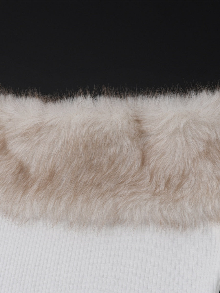 Este top combina estilo moderno y calidez invernal en una sola prenda. Su diseño de un solo hombro aporta un toque elegante y atrevido, mientras que el bajo irregular con costuras de felpa le da un aire acogedor perfecto para la temporada. Ideal para fiestas, reuniones familiares o looks diarios con un toque festivo.