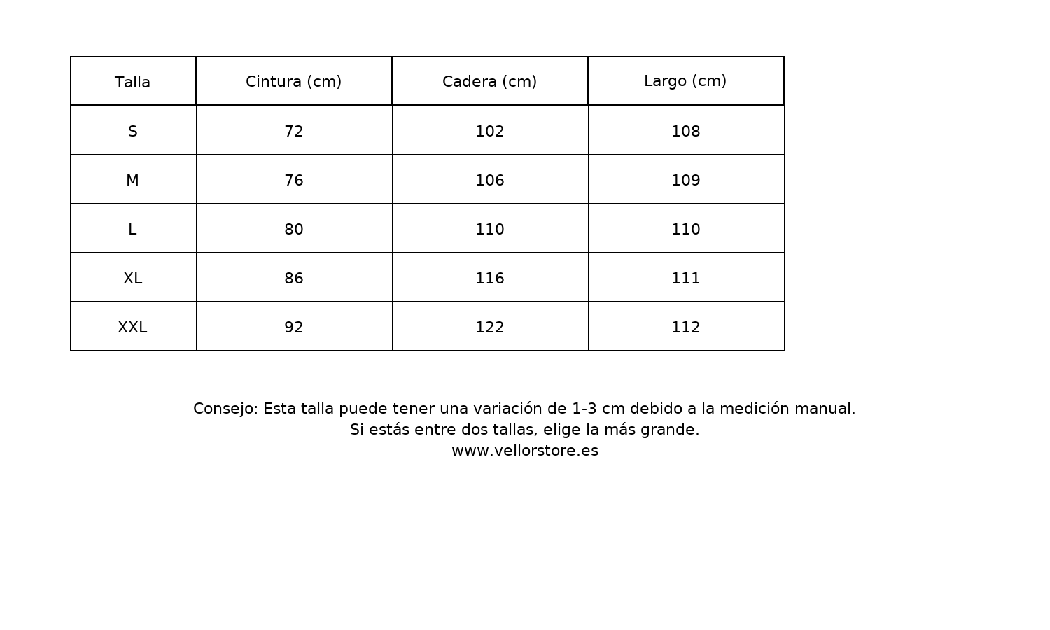 • Mantenimiento: Lavado máx. 30°C / No usar lejía / Planchar a baja temperatura / No limpieza en seco