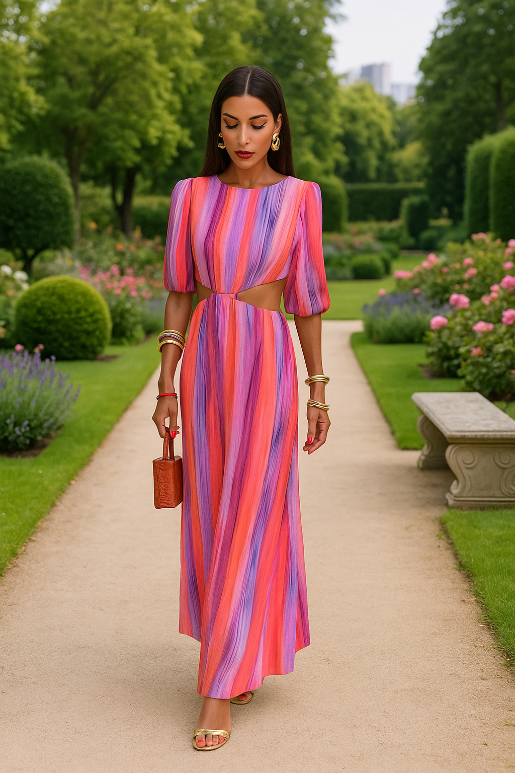 Es un vestido que estiliza muchísimo, me hace ver más alta y delgada gracias al corte y al estampado vertical. ¡Encantada!