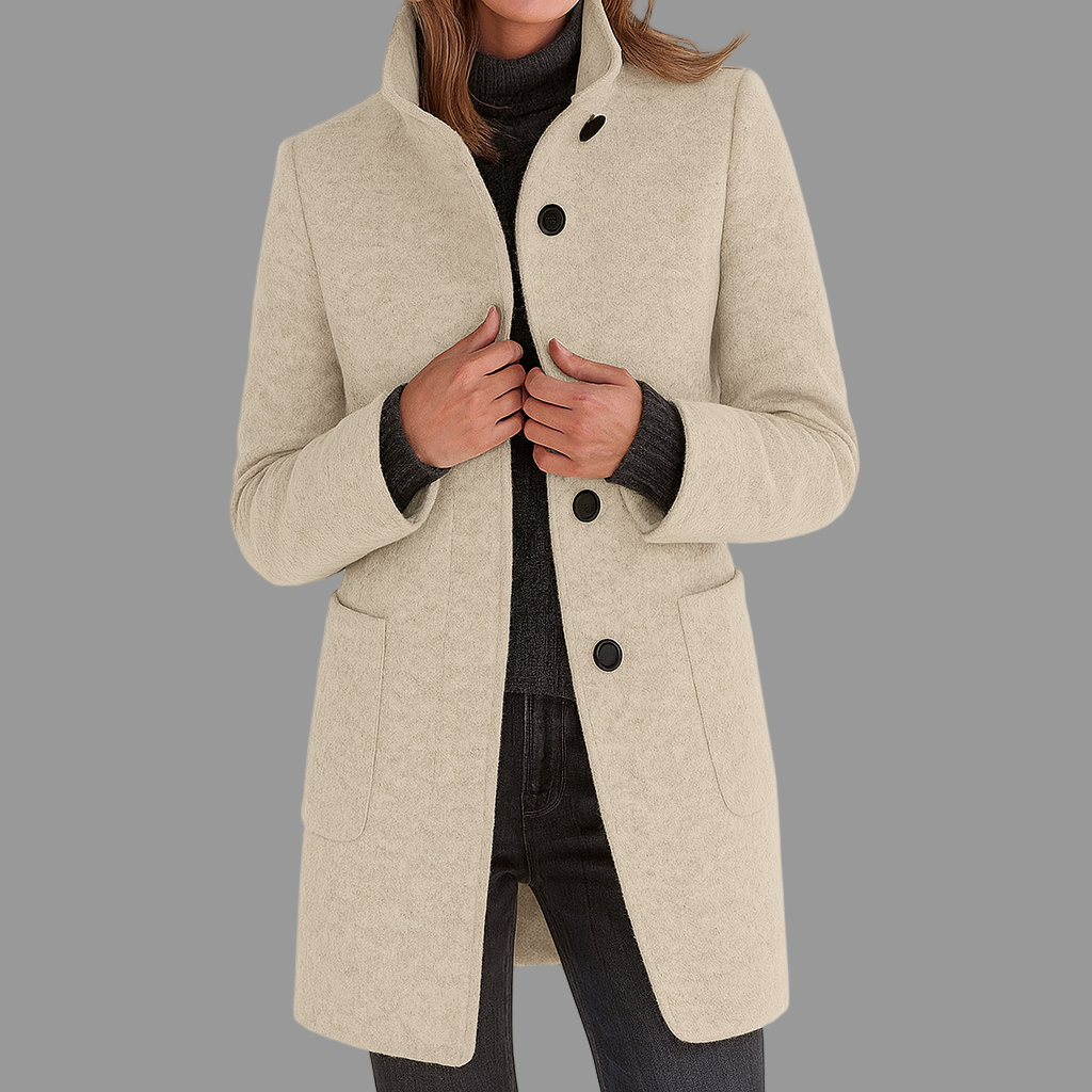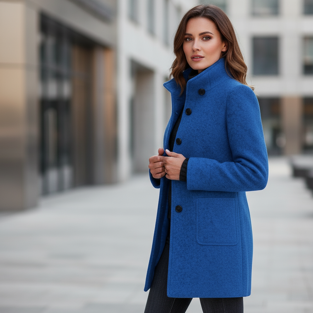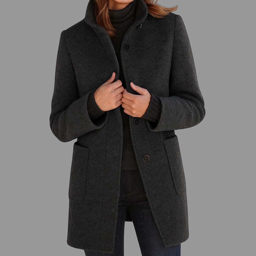 Combina calidez, elegancia y modernidad en una sola prenda. Su corte recto y estilizado realza la figura, mientras el cuello alto tipo coreano ofrece protección adicional frente al viento sin perder sofisticación. Fabricado con una suave mezcla de lana de alta calidad, garantiza abrigo y ligereza en cada uso, temporada tras temporada.
