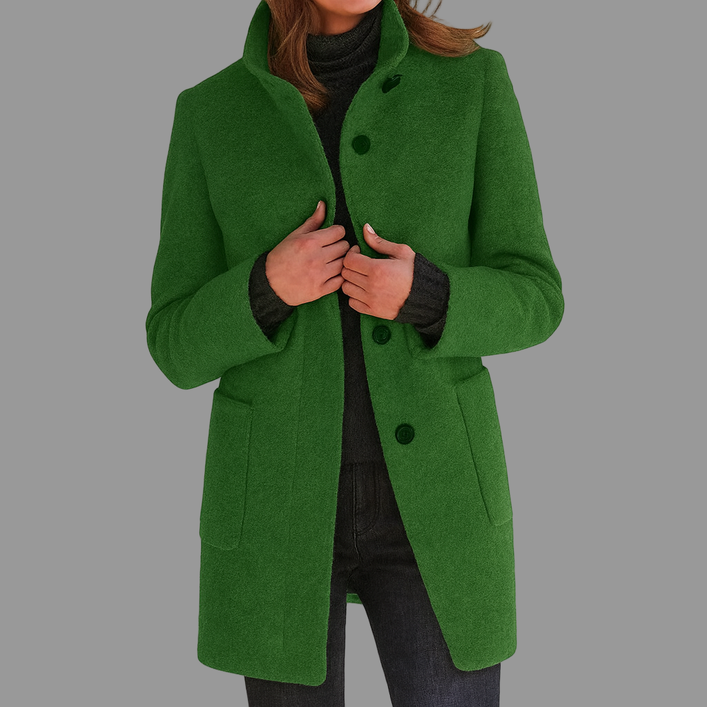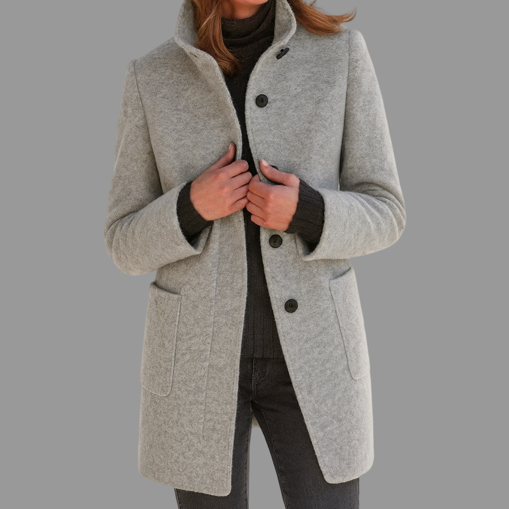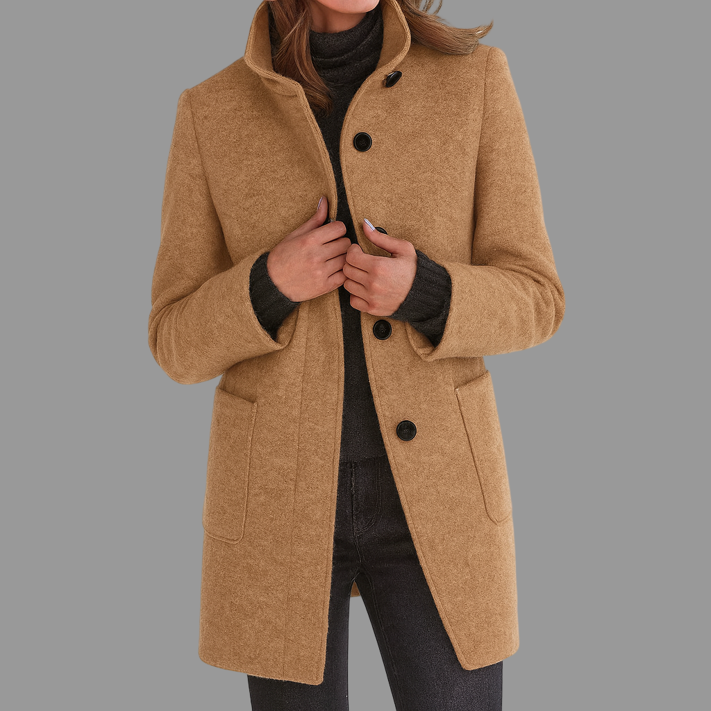 Combina calidez, elegancia y modernidad en una sola prenda. Su corte recto y estilizado realza la figura, mientras el cuello alto tipo coreano ofrece protección adicional frente al viento sin perder sofisticación. Fabricado con una suave mezcla de lana de alta calidad, garantiza abrigo y ligereza en cada uso, temporada tras temporada.